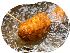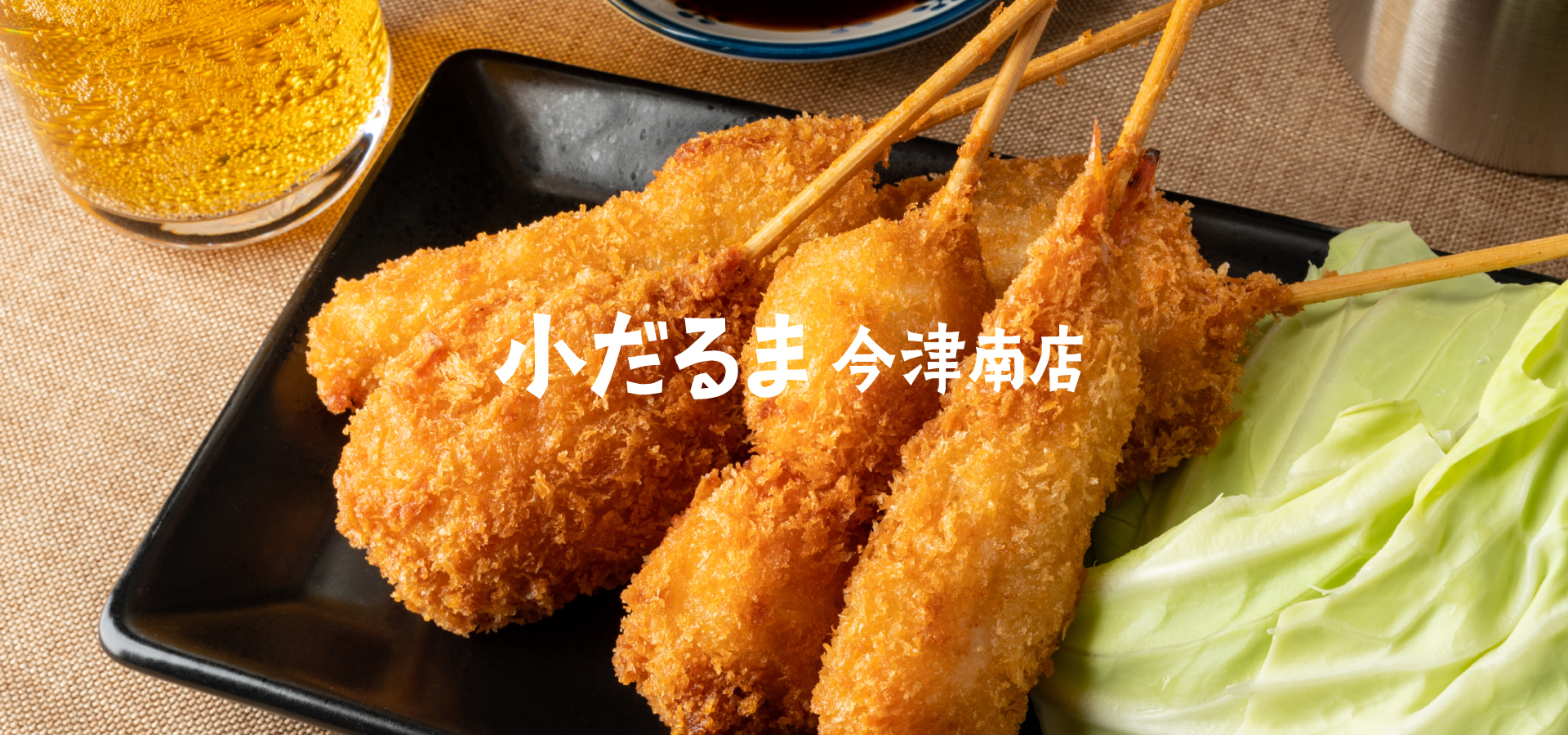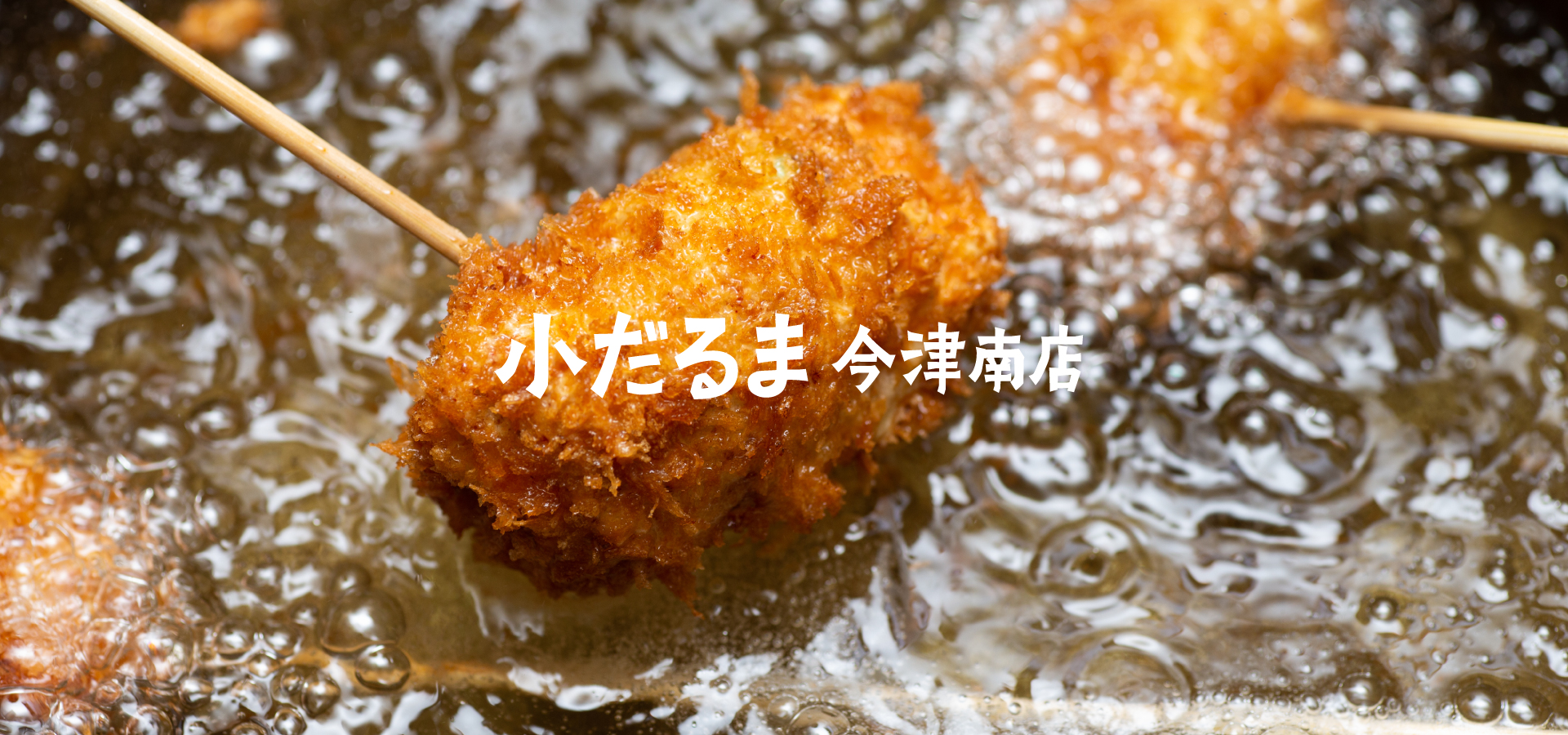 毎日手間をかけて串うちしている小だるま名物の串カツ。自家製ソースとともに、絶品の味をお楽しみください♪もちろん串カツは二度付け厳禁です!